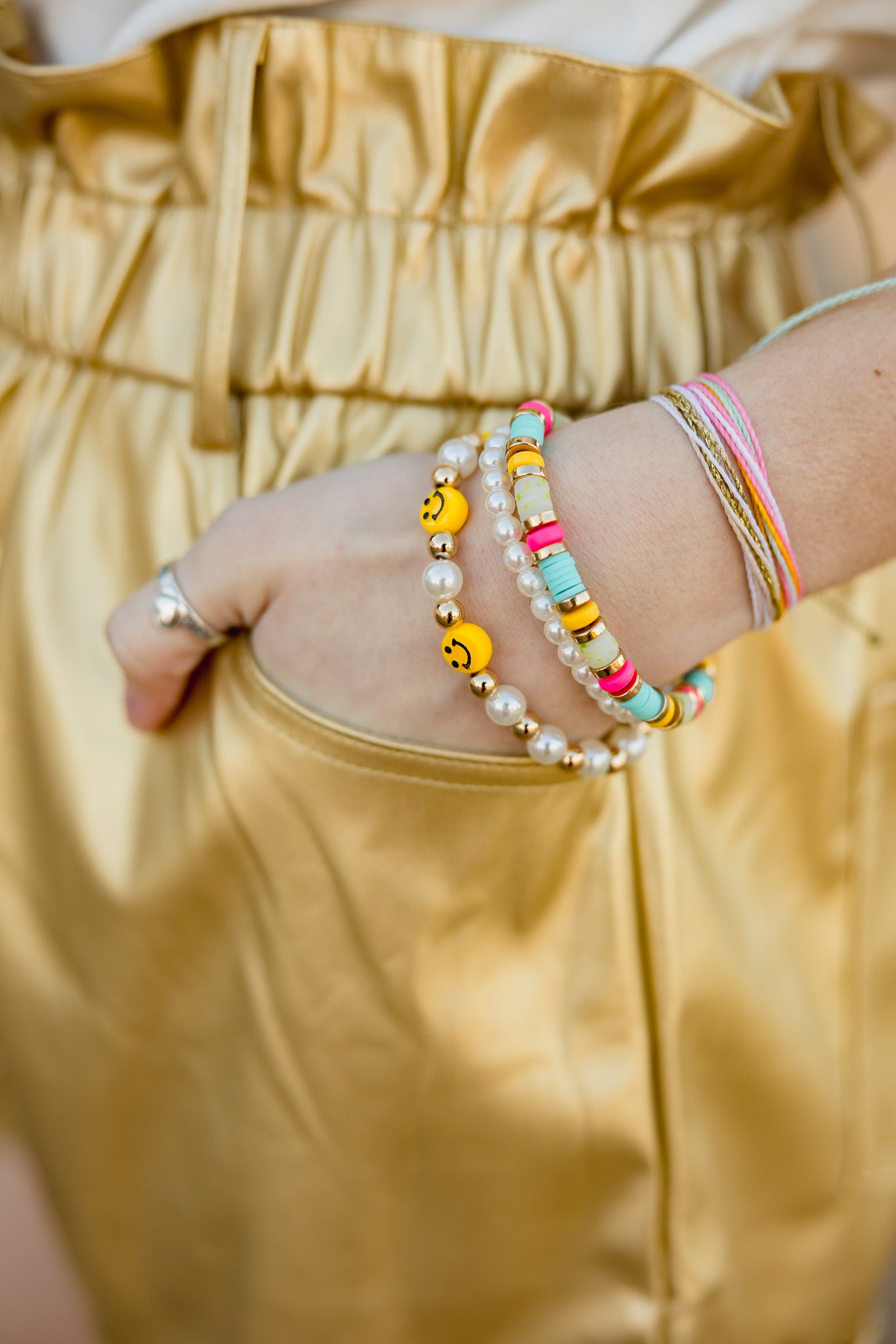 Add some fun and color to your outfit with these Smiley Colorful Bracelets! This stacked bracelet set features smiley face designs in various colors, perfect for bringing a playful touch to your look. With these bracelets, you'll be spreading smiles wherever you go.